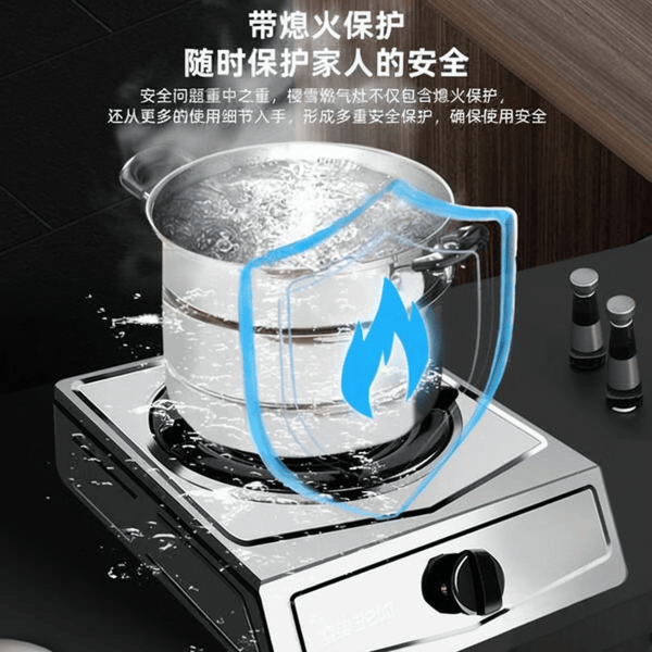 安全配置方面,这款灶具还带有童锁保护和防滑炉架,确保家庭使用时的安全。占用空间不大,适合小厨房或公寓使用,不仅易于操作,也方便日常清理。此外,带有熄火保护和童锁设计,无论是日常家庭还是单身人士,都相当合适。