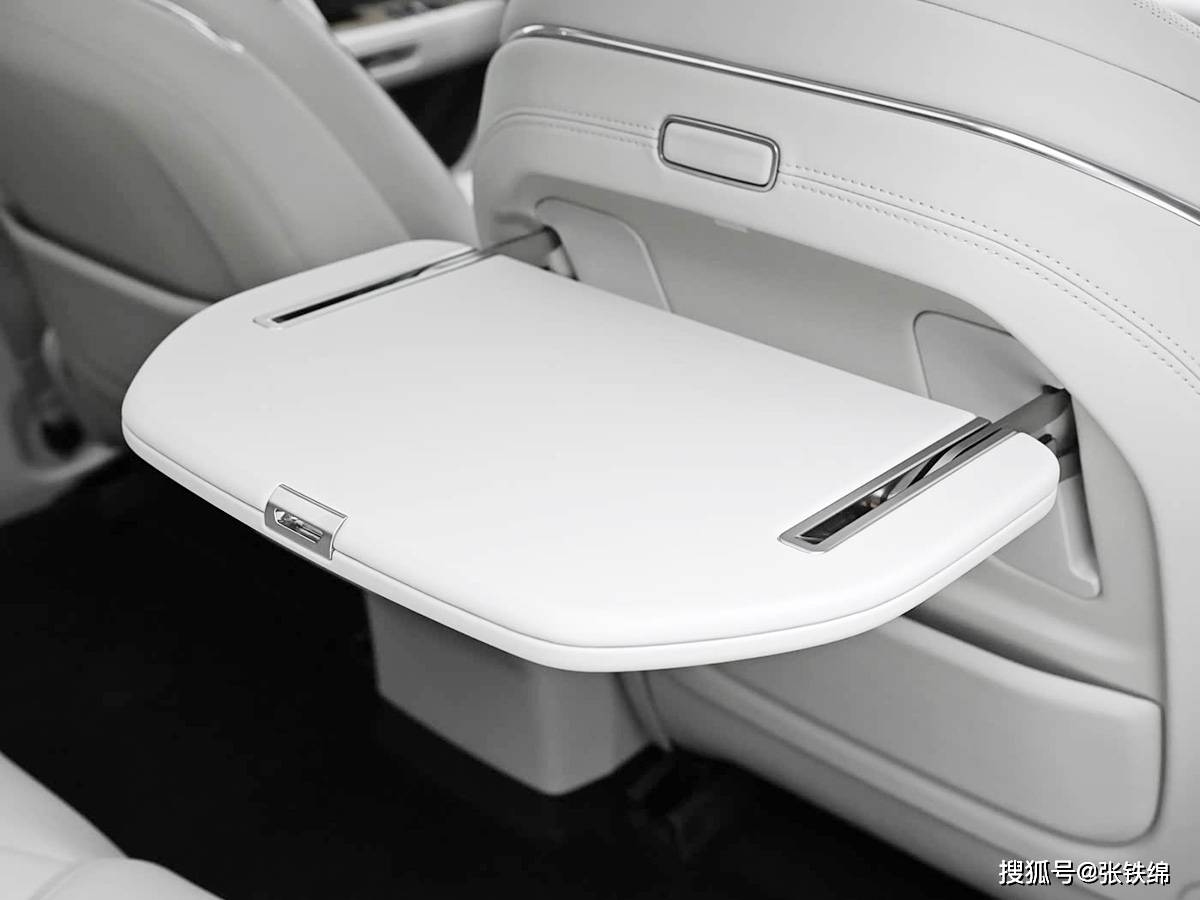 新车的后排有着不错的空间表现,还提供了单侧的后排小桌板、车载冰箱和后排独立空调等。