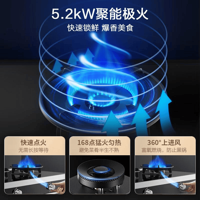 - 高效火力,快速加热:5.2KW火力让烹饪更迅速,提高家庭聚会的效率。