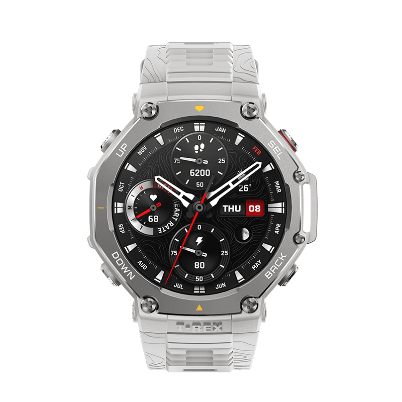 AMAZFIT华米T-Rex 3是一款专为户外运动爱好者设计的智能手表。它的核心卖点在于其强大的定位能力和丰富的导航功能。支持免费下载全球范围的基础地图、等高线图和雪场图,使得用户在各种环境下都能轻松找到方向。