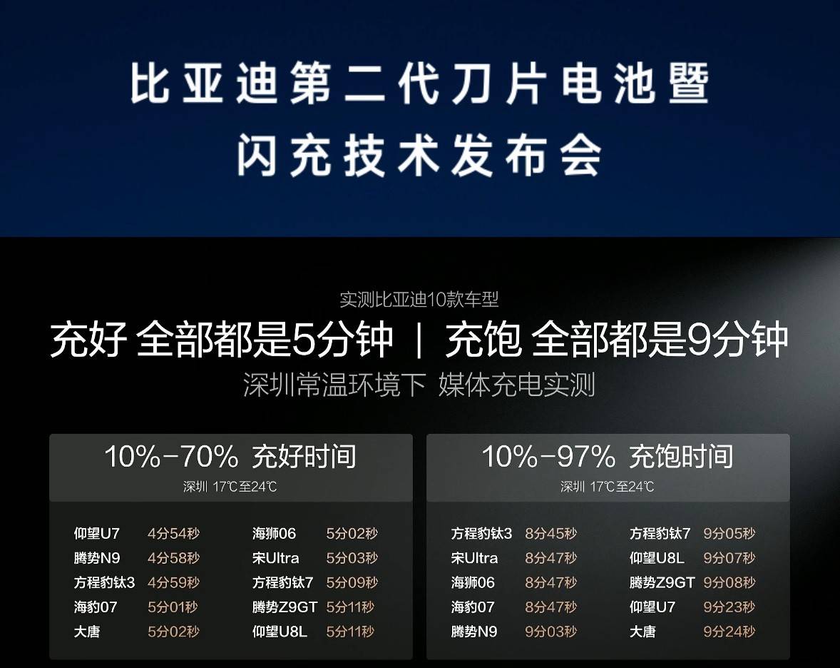 在3月5与举行的比亚迪第二代刀片电池暨闪充技术发布会上,比亚迪掌门人王传福兴奋地亮出技术新家底,其第二代刀片电池实现“常温充电,5分钟充好,9分钟充饱;低温充电,零下30度,只多3分钟”,创造全球量产最快充电速度新纪录。