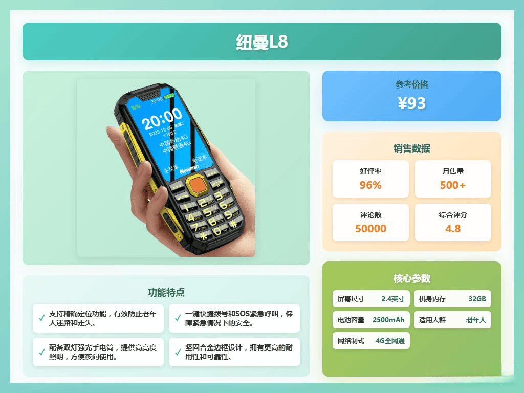 这款纽曼老人机L8是经典之作,适合大多数老年用户。