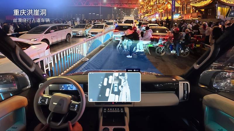 博弈智能化:经过海量「国宾级司机」驾驶数据训练,系统具备超前预判和防御性驾驶能力,在加塞、人车混行等场景中「该让则让、该顶则顶」。