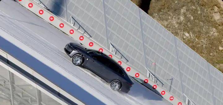 为验证这套底盘的极限能力,昊铂A800在发布会前完成了一场行业首创挑战:登顶国家跳台滑雪中心“雪如意”。面对85米垂直落差、125米坡长、37.1°最大坡度、冰雪低附着的多重极端条件,以双人满载状态成功冲坡,成为全球首款完成这一挑战的量产轿车,直接对标并超越传统豪华旗舰的爬坡与稳定极限。