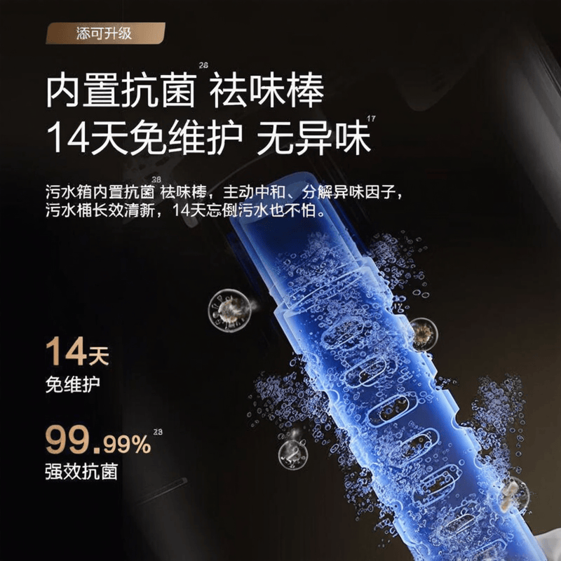 - 一键自清洁功能配合高温蒸汽除菌,抑菌率达99.9%。