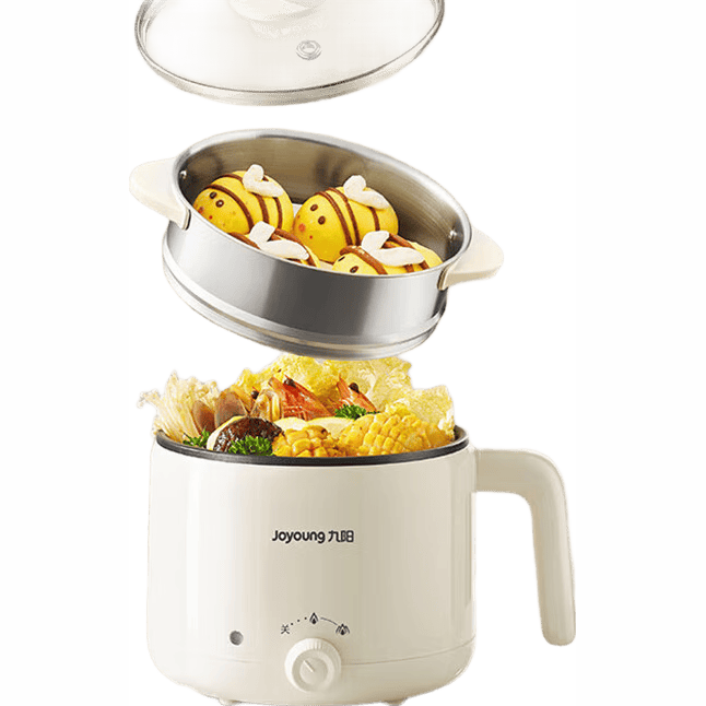 这款九阳电煮锅不仅能蒸、煮、炖,还具备食品级抗菌技术,使用更加安心。1.8L的容量特别适合1-2人用,既能满足日常需求,又不占空间。