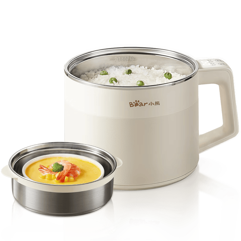 小熊电煮锅支持蒸、煮、炖等多种功能,304不锈钢内胆确保健康,无有害物质。