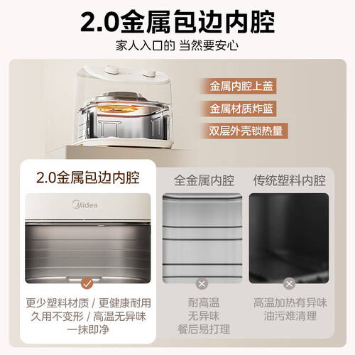 特点:10L大容量、360°热风循环、无油低脂、易清洗