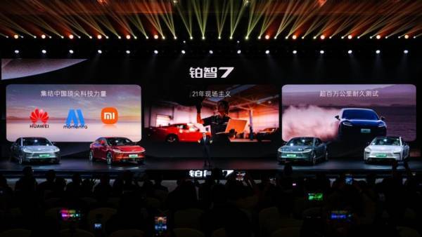 在硬件层面,铂智7车长达到5130mm,轴距3020mm,定位中大型轿车。新车可选装双腔空气悬架,官方称相关耐久测试达到904万次,远高于行业常见测试标准。动力系统方面,新车搭载华为DriveONE电驱系统,并配备高强度钢铝结构车身。