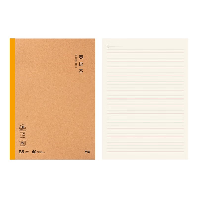 晨光B5英语本采用环保牛皮纸制作,坚韧耐用,给你带来不一样的书写体验。它不仅厚实耐磨,而且彩胶包边设计,避免了边缘磨损,确保每一页都能陪伴你走过漫长的学习旅程。
