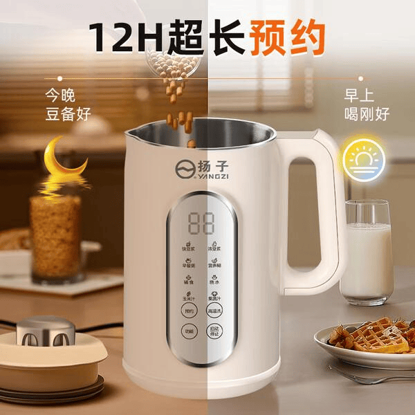 预约定时省心:晚上睡觉前把食材放进去,设置好12小时预约,早上起来就能直接喝到热乎乎的豆浆或者米糊,特别省事儿。对于上班族来说,早上能多睡一会儿,简直太幸福了。而且它还有一键高温清洗功能,用完之后清洗起来也方便,省去了不少麻烦。