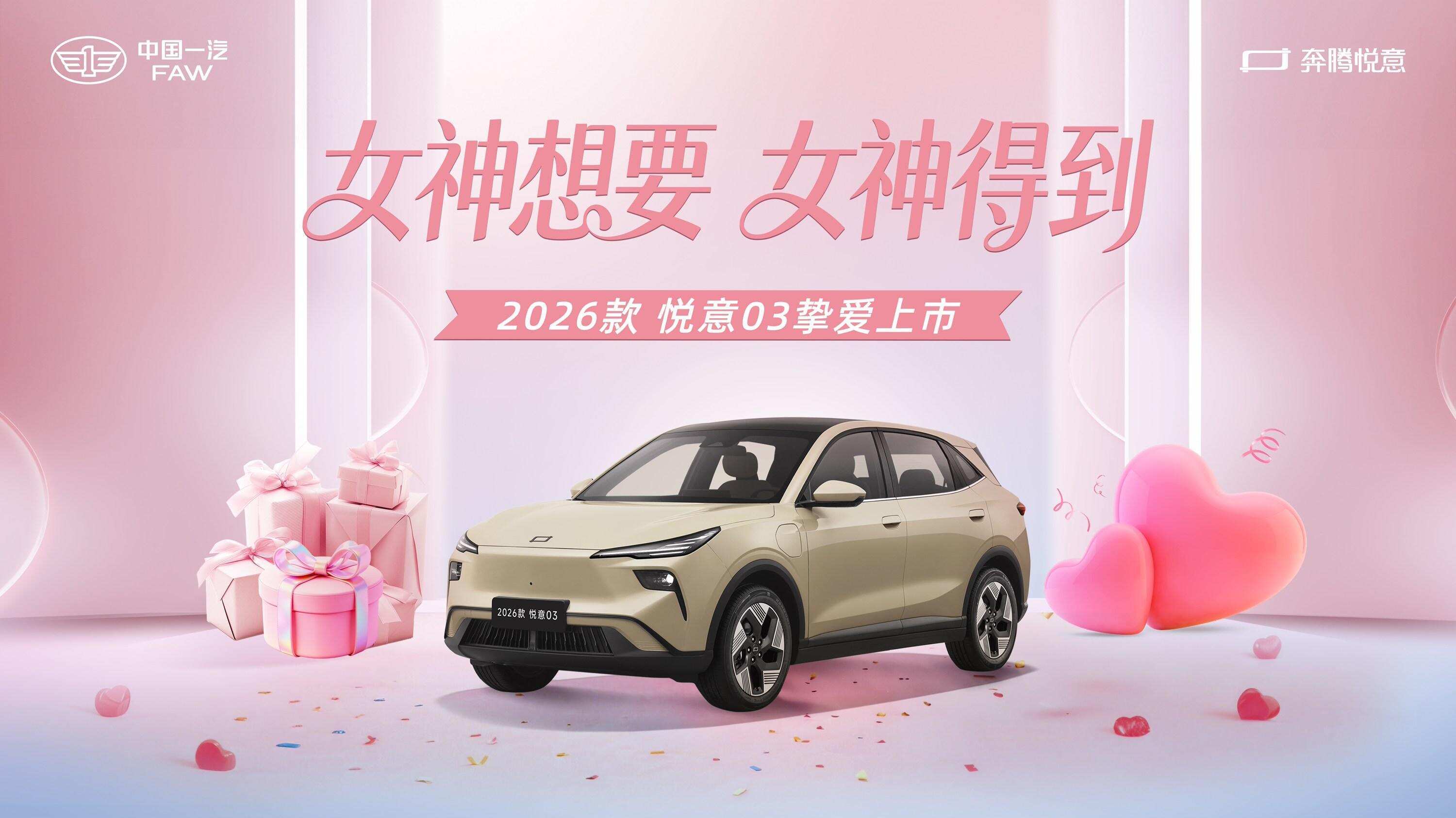 3月8日,一汽奔腾2026款悦意03正式上市,新车定位纯电家享SUV,针对年轻小家庭尤其是家庭女性用户需求进行升级优化,共推出445km、565km两种续航版本共计6款车型,官方售价区间为7.98-11.99万元。此外,2026款悦意03还推出包含质保、补贴在内的央企五重礼遇购车政策,进一步降低用户购车与用车门槛。