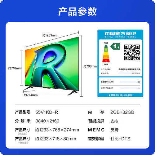 海信ViddaR55的节能环保特性也让人倍感安心。作为一款一级能效的电视,它在保证强大性能的同时,更加注重节能效果,降低了家庭的电费支出,为您省下每一分钱。
